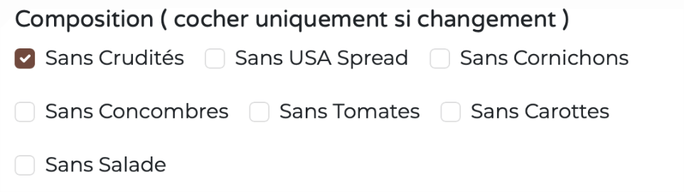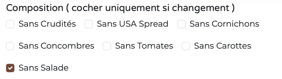 Si vous désirez un sandwich non modifié, choisissez le et placez le dans votre panier sans rien cocher de plus